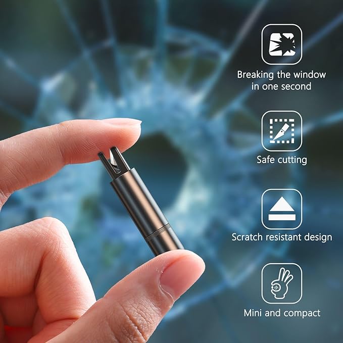 2-in-1 Functionality: Combines a window breaker and seat belt cutter, ensuring you can escape your vehicle in emergencies without hassle.