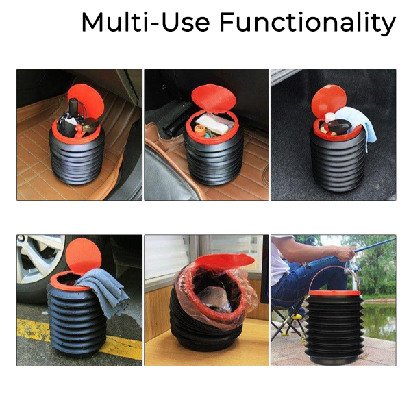 The bucket uses a flexible yet rigid collapsible structure that expands when needed and flattens down for compact storage. Made from high-grade silicone and reinforced plastic, it retains its shape when filled but easily folds when empty, making it a must-have for car enthusiasts, outdoor adventurers, and everyday drivers.