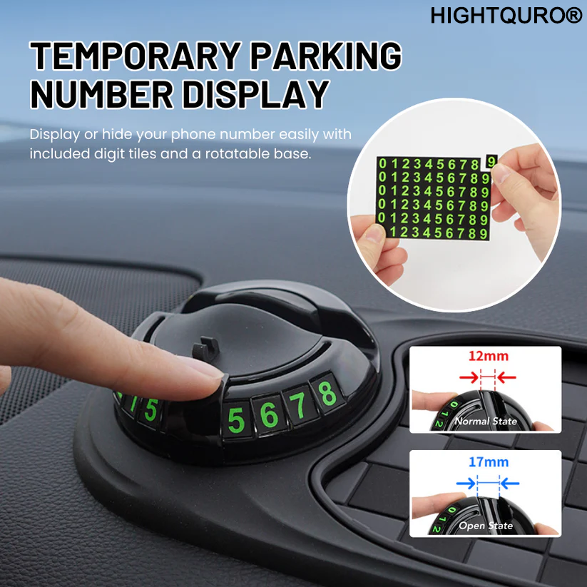 Includes 0–9 digit tiles so you can form and display your phone number for easy contact when parked. The rotatable base allows you to show or hide the number as needed for privacy.